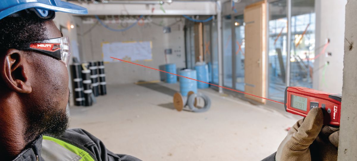Láser de medición fácil de usar para realizar mediciones de distancias y superficies de hasta 60 m