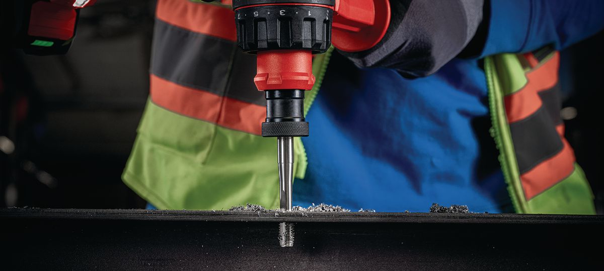 - Taladro en láminas de metal de hasta 3 mm de espesor con brocas escalonadas de hasta 40 mm de diámetro